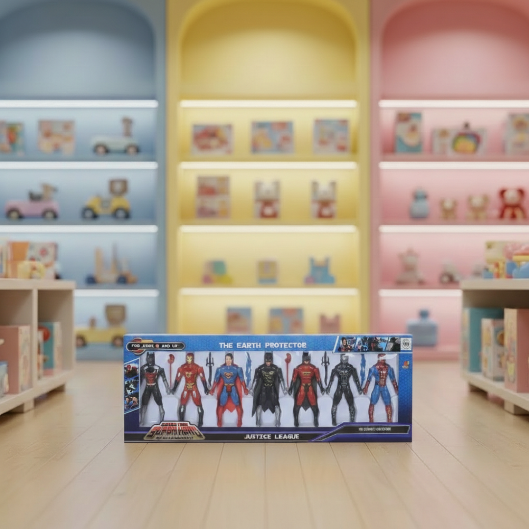 طقم الابطال الخارقون اجعل طفلك يعيش لحظات المغامرة والتشويق مع طقم الأبطال الخارقون السبعة، حيث يجمع اللعب بين المرح، الإبداع، وتطوير المهارات بطريقة آمنة ومسلية.احصل عليه من متجرنا little star stoy shop toys